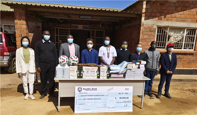 公司向赞比亚里卡萨男子中学捐钱
